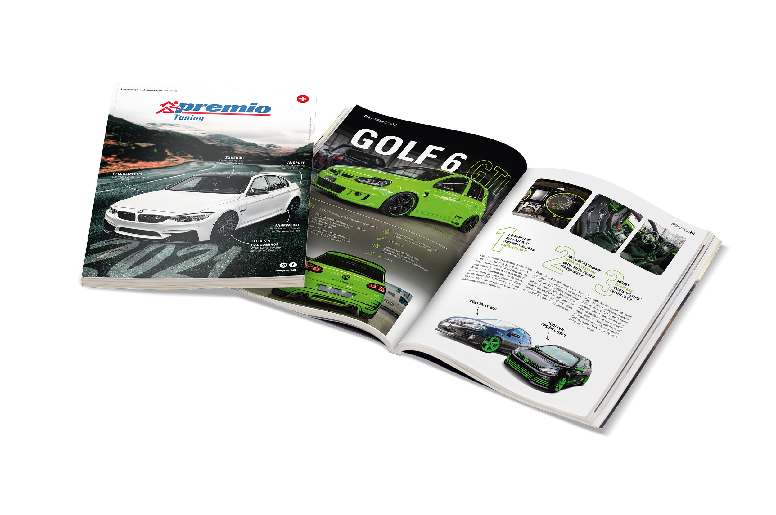 Der Premio Tuning Katalog 2021 macht seinem Ruf als das Nachschlagewerk für Autofans auch in seiner 16. Auflage alle Ehre. Trotz Corona und Messeflaute ist den Machern ein Meisterstück geglückt: Mit 164 Seiten ist die dreisprachig aufgelegte „Swiss Edition“ prall gefüllt mit Produkten aus den Bereichen Felgen, Fahrwerk, Sportauspuffanlagen, Pflegemittel sowie Zubehör. Der grosse Magazinteil mit Tipps rund ums Thema Fahrzeugveredelung machen den Premio Tuning Katalog zeitgleich zu einer spannenden und informativen Lektüre. Ein Premio Partner aus Graubünden präsentiert im Magazin Teil einen veredelten VW Golf 6 GTI. Der Katalog liegt ab sofort bei allen Premio Partnern aus und kann über die Homepage www.premio.ch portofrei nach Hause bestellt werden.